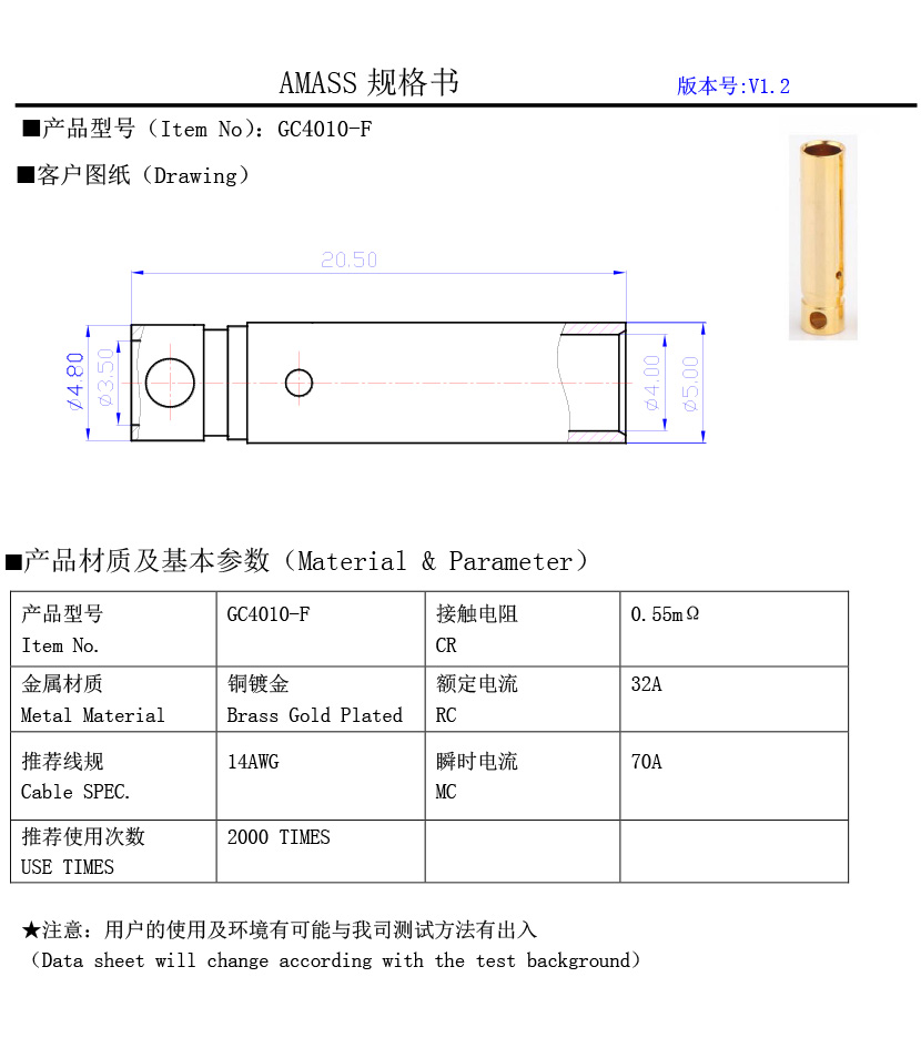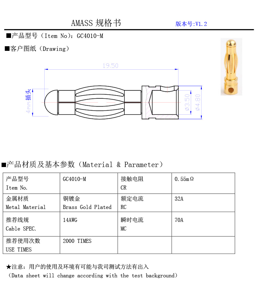 品牌:Amass GC4010 插頭連接線