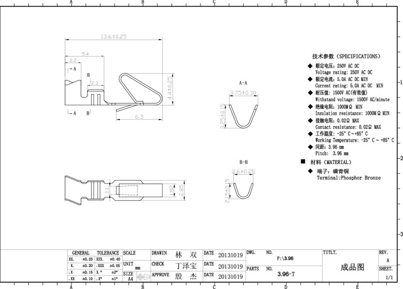 絕緣體材質(zhì):尼龍PA66 UL94V-0(2)